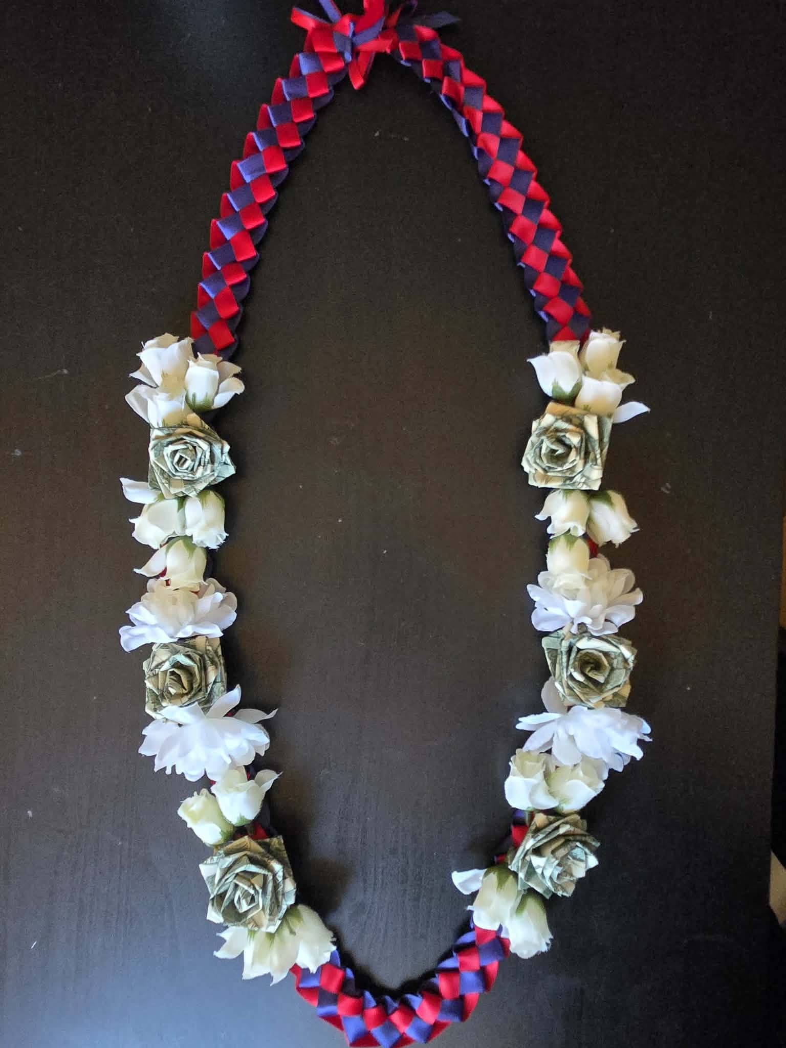 DISCLAIMER: All currency used in our leis, bouquets & wreaths remain genuine legal tender. Bills are folded only for decorative purposes and fully usable once disassembled.