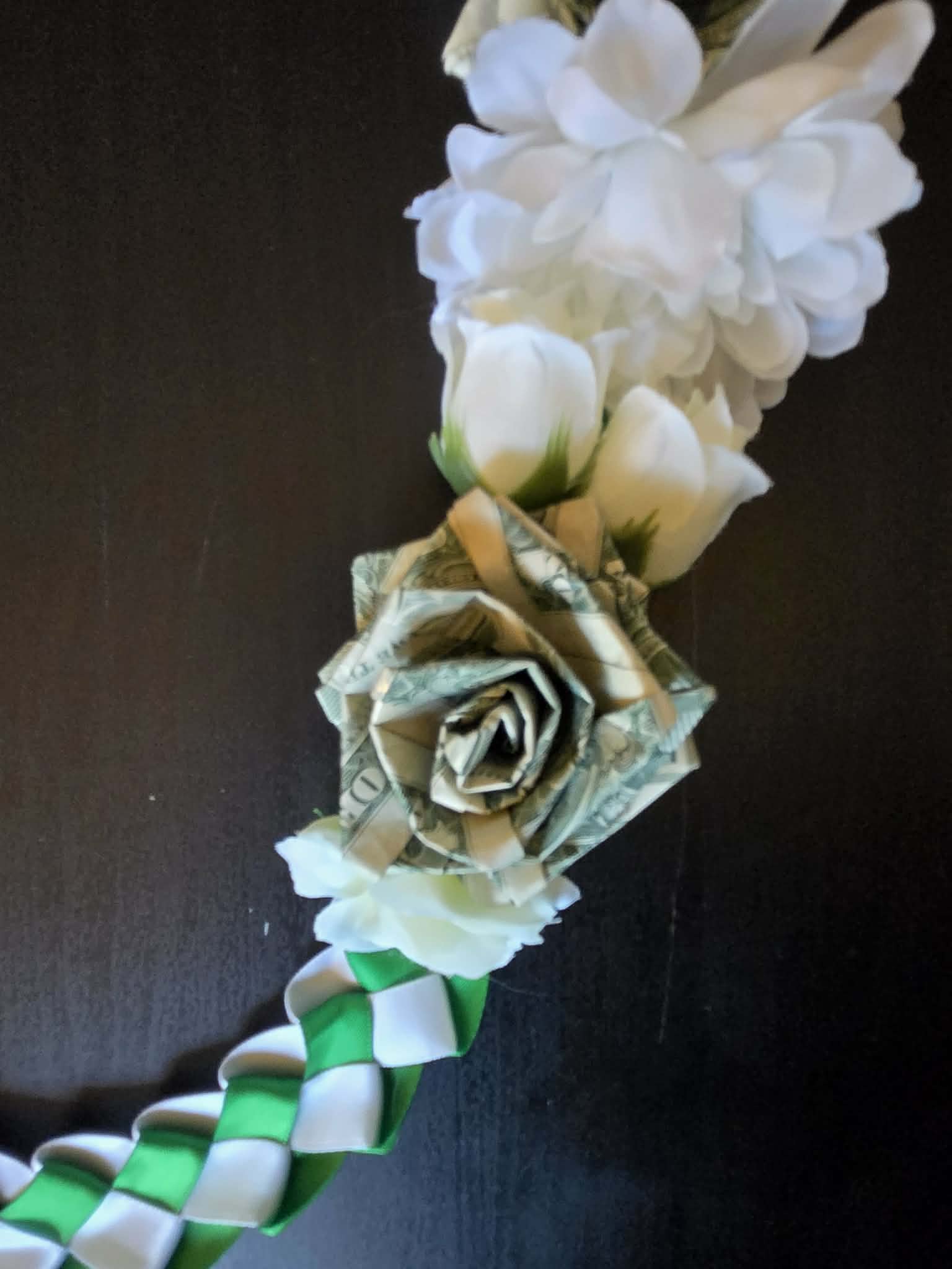 DISCLAIMER: All currency used in our leis, bouquets & wreaths remain genuine legal tender. Bills are folded only for decorative purposes and fully usable once disassembled.