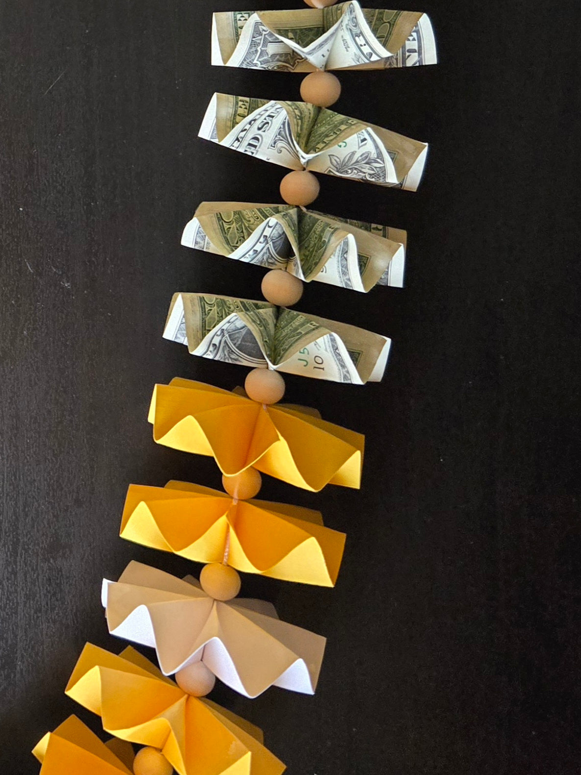 DISCLAIMER: All currency used in our leis, bouquets & wreaths remain genuine legal tender. Bills are folded only for decorative purposes and fully usable once disassembled.